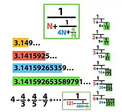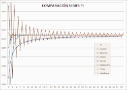 Se incluye Gráfica animada donde se compara algunas de las series л de eficiencia similar con la versión Leibniz optimizada a nivel 6 (por Antonio Molina), esto significa que toma los últimos 6 promedios y los desarrolla en cascada, para acelerar la convergencia, teniendo un bajo costo computacional en comparación a otros cálculos más complejos para alcanzar este nivel.