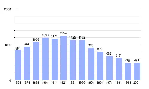 | Gráfica de evolución demográfica de Serralunga d'Alba entre 1861 y 2001 |