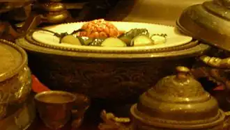 - ↑ Gayley, Holly (2013). «Reimagining Buddhist Ethics on the Tibetan Plateau». Journal of Buddhist Ethics 20: 264. ISSN 1076-9005. Archivado desde el original el 25 de abril de 2018. Consultado el 21 de junio de 2020. «Each dish is described in excruciating detail, including the infamous case of eating live monkey brains right out of the skull.»