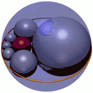 El caso límite es cuando A, B y C son del mismo tamaño. El sexteto ahora se vuelve recto. S1 es pequeño cuando pasa a través del agujero que queda entre A, B y C, y crece hasta que se convierte en un plano tangente a ellos. El centro de inversión también está ahora en un punto de tangencia con la imagen de S6, por lo que es también un plano tangente a A, B y C. A medida que S1 avanza, su concavidad se invierte, y pasa a rodear todas las otras esferas, tangentes a A, B, C, S2 y S6. S2 se desplaza hacia arriba y crece para convertirse en un plano tangente y S6 se encoge. S1 pasa a tener entonces la posición anterior de S6 como un plano tangente. A continuación, invierte la concavidad de nuevo y pasa otra vez a través del agujero, comenzando otro ciclo de ida y vuelta. Ahora, la línea de centros es una hipérbola degenerada, convertida en dos líneas rectas.[2]