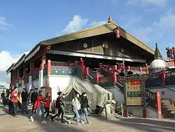 ![]() Puerta de entrada al Shambhala, con la atracción de fondo. | ||