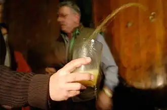 | Preparación | Echar la sidra al vaso desde cierta altura para que el chorro de sidra haga txinparta o se "rompa" en el vaso. | |