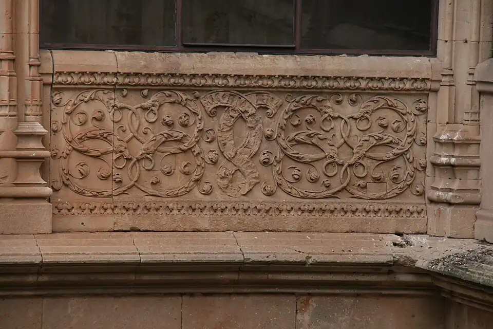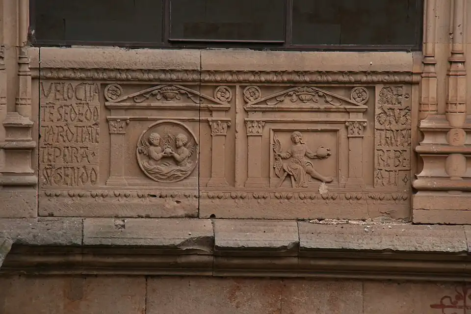 - ↑ A.E.A. (1950). «Los relieves del patio de la Universidad de Salamanca». Archivo Español de Arte XXIII (92): 356. ISSN 0004-0428.