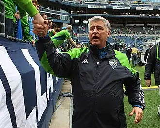 En 2009, fue contratado como el nuevo entrenador del Seattle Sounders FC. En su primera temporada, se coronó campeón de la U.S. Open Cup y clasificó a los playoffs, pero, quedó tempranamente eliminado en las semifinales de conferencia. Luego, ganó la misma U.S. Open Cup en 2010 y en 2011. En 2014, los Sounders terminaron primeros en la Conferencia del Oeste y en la tabla general, con esos resultados, se quedó con la MLS Supporters' Shield. Adicionalmente, obtuvo la U.S. Open Cup en ese mismo año. En julio de 2016, fue destituido de su cargo y siendo remplazado por el asistente técnico Brian Schmetzer.[5]
