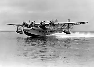 Sikorsky S-42, un hidrocanoa comercial diseñado y construido por la División de Aviones Vought-Sikorsky de United Aircraft Corporation en Stratford, Connecticut para cumplir con los requisitos solicitados para un hidrocanoa de largo alcance por Pan American World Airways (Pan Am) en 1931. El innovador diseño incluyó flaps en las alas, hélices de paso variable y un casco de longitud completa hasta la cola. El prototipo voló por primera vez el 29 de marzo de 1934 y, en el período de desarrollo y vuelos de prueba que siguió, estableció varios récords mundiales de carga útil y altura.