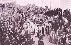 Las reliquias de Simeón comienzan a atraer a muchos peregrinos al monasterio; a principios del siglo XX el número de visitantes alcanzaba las 60,000 personas al año.[9]La Catedral de la Exaltación se construyó en el Monasterio Nikolaévski en 1913 para albergar entre ocho y diez mil personas. La dedicación y el traslado de las reliquias de Simeón tuvieron lugar el 11 de septiembre de 1913, cuando se celebró el tercer centenario de la dinastía Romanov. Ese día llegó desde Livadia un telegrama de la familia del zar: "Verjoturie. Monasterio Nikolaévski. Al padre abad Jenofonte. Os saludo de todo corazón a usted y a la comunidad con este día solemne de dedicación de la nueva iglesia, del querido monasterio y de la gran fiesta de mañana. Busco vuestras oraciones ante el santuario de los justos. Nicolás. Anastasia". En 1914, la familia del zar donó un baldaquino de plata para el santuario. Fue trasladado solemnemente de Ekaterimburgo a Verjoturie durante una procesión cruzada que duró 20 días. Varios miles de peregrinos caminaron más de 350 kilómetros.[9] El 27 de mayo, las reliquias de Simeón fueron trasladadas de la iglesia Nikolaévski a la Catedral de la Exaltación del Monasterio Nikolaévski.