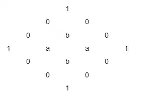 En el caso de la superficie llamada K3, donde vemos una variación Calabi–Yau de dos dimensiones, donde los números de Betti son {1, 0, 22, 0, 1}, el diamante de Hodge queda: