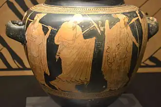 El simposio griego era una institución social helénica clave. Era un foro en el que las familias respetadas conversaban, debatían, conspiraban, o simplemente, se divertían con los demás.[5]