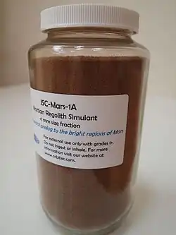 - ↑ «JSC-1A Lunar and Martian Soil Simulants». Planet LLC. Archivado desde el original el 28 de abril de 2014. Consultado el 28 de abril de 2014.
