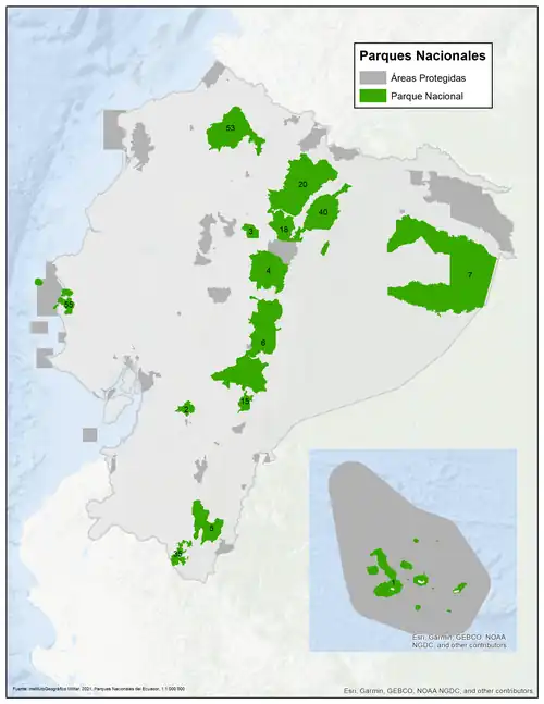 - ↑ «Ecuador celebra el Día del Sistema Nacional de las Áreas Protegidas con más de 30 actividades – Ministerio del Ambiente, Agua y Transición Ecológica». www.ambiente.gob.ec. Consultado el 18 de julio de 2021.