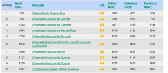 - ↑ «webometrics_Argentina». Consultado el 26 de mayo de 2022.