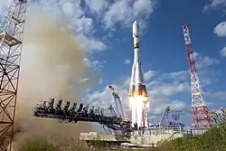 ![]() Un cohete Soyuz-2.1b lanza un satélite GLONASS-K2 desde el Sitio 43/3 en agosto de 2023 | ||