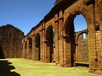 ![]() Reducción jesuítica de San Miguel Arcángel, en Brasil, la primera que fue declarada Patrimonio de la Humanidad por la Unesco en 1983 | ||