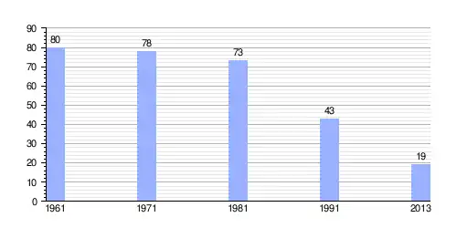 Hasta 2013 la población era de 19 habitantes,[4] con una densidad de población de 3,1 hab/km².[4]