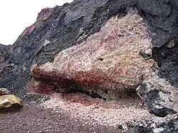 La meteorización de la costa en la zona expone de manera continua nuevos depósitos minerales de los lodos que componen la geología subyacente. Estos suelen ser de color rojo cuando son ricos en hierro.