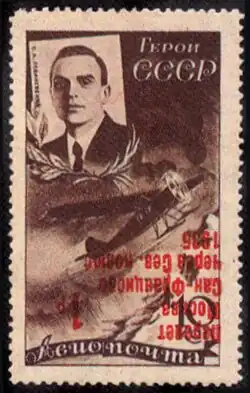 Estampilla con sobreimpresión fue emitida el 3 de agosto de 1935 para la planeada salida de Siguizmund Levanevski por la ruta Moscú - Polo Norte - San Francisco. Un intento de sobrevuelo se efectuó durante el día; sin embargo, el vuelo en el aeroplano Ant-25 hasta la distancia de 2000 kilómetros fue abortado debido al funcionamiento defectuoso del motor.