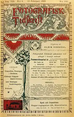 Publica la revista Fotografik Tidskrift (Diario fotográfico) que surgió en 1888 editada por la Asociación de Fotógrafos que originó la Sociedad Sueca de Fotografía.