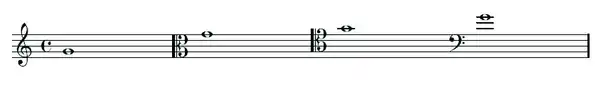 - En clave de do en tercera y en cuarta se sitúa en la quinta línea y en la primera línea adicional respectivamente.