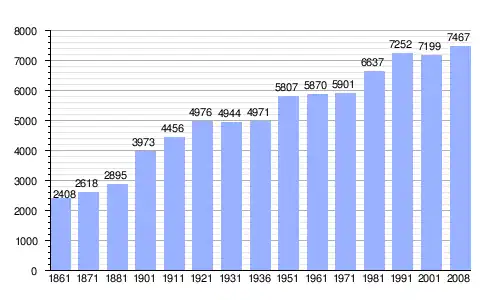 | Gráfica de evolución demográfica de Solarino entre 1861 y 2008 |