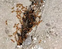 Es una hormiga parásita y por lo general tiene su nido cerca de otra especie, robando comida al entrar en la colonia extranjera a través de minuciosos túneles excavados en su propio nido.[2]