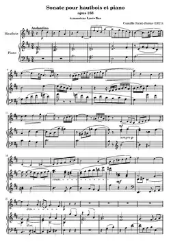 La Sonata para oboe y piano en re mayor, Op. 166, de Camille Saint-Saëns fue escrita en 1921, año de la muerte del compositor. Tan pronto como la acabó, Saint-Saëns le comunicó a su editor en París que quería probarla antes de que fuera editada para su publicación. La sonata fue interpretada por su amigo Louis Bas, primer oboe solista de la Societé du Conservatoire de l'Opéra, que estaba tan encantado con la obra que Saint-Saëns se la dedicó.[1]