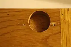 El propósito del soporte es para aguantar una fresa Forstner en su lugar, con un ángulo de 90° mientras hace un agujero de vaso de 3 cm de diámetro. El ángulo de ataque de la herramienta es crítico para el correcto movimiento de la bisagra, el soporte permite mantener un ángulo de 90° durante toda una serie de perforaciones sin ningún esfuerzo.[2]