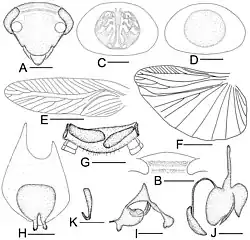 El cuerpo del macho mide 6,5-7,9 milímetros de longitud y la hembra 6,5-7,8 milímetros.[1]