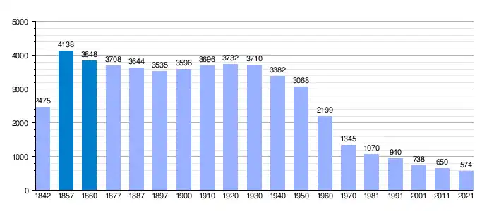 | Gráfica de evolución demográfica de Sos del Rey Católico[7] entre 1842 y 2021 |