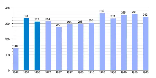 | Gráfica de evolución demográfica de Soto de San Esteban[4] entre 1842 y 1960 |