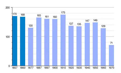 | 1842 | 1857 | 1860 | 1877 | 1887 | 1897 | 1900 | 1910 | 1920 | 1930 | 1940 | 1950 | 1960 | 1970 | 2021 | ||||||||||||||