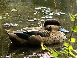 - ↑ BirdLife International (2009). «Anas hottentota». Lista Roja de especies amenazadas de la UICN 2010.4 (en inglés). ISSN 2307-8235. Consultado el 23 de abril de 2011.