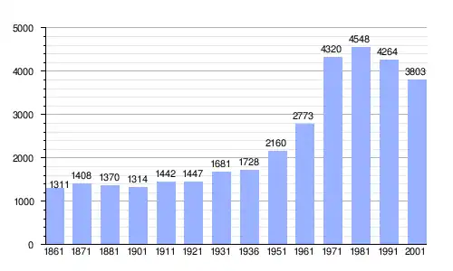 | Gráfica de evolución demográfica de Spotorno entre 1861 y 2001 |