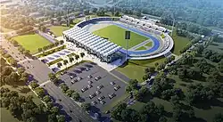 El estadio inaugurado el 26 de mayo de 2019 cuenta con una capacidad de 10.726 asientos y está compuesto por 4 gradas de las cuales solo la tribuna principal está cubierta, esta posee 3.726 asientos, incluidos 300 asientos VIP. El estadio cuenta con un campo de fútbol sobre césped natural y una pista de atletismo con 8 calles de 400 metros, el complejo está equipado para otras disciplinas deportivas como las prácticas de salto, posee también un campo adicional de césped sintético dedicado al entrenamiento de actividades diversas.