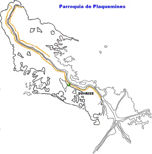 Sunrise es una pequeña localidad ubicada sobre el delta del Misisipi, dentro de la parroquia de Plaquemines, en el estado de Luisiana, Estados Unidos.