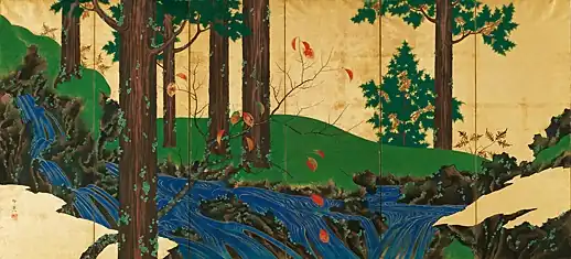 - ↑ «Mountain Stream in Summer and Autumn». Nezu Museum. Consultado el 13 de octubre de 2017.