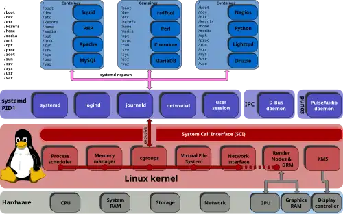 - ↑ «systemd README», freedesktop.org, consultado el 9 de septiembre de 2012.