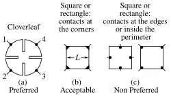 - Deben ser infinitamente pequeños. Prácticamente deben ser lo más pequeños posibles; cualquier error dado por su tamaño estará en el orden de D/L, donde D es el diámetro promedio del contacto y L es la distancia entre los contactos.