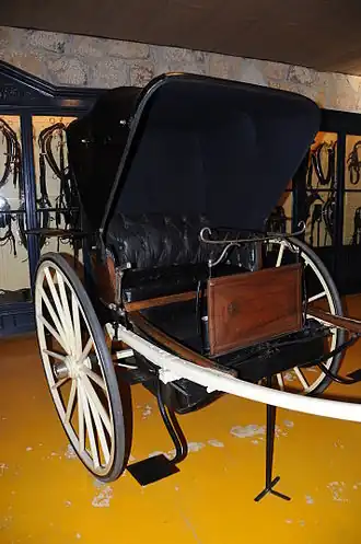 - Pequeño tílburi con capota. La caja va unida a las varas por hierros de escuadra. La montura la forman dos muelles de eje, tan pronto unidos a las varas por brazos en forma de cuello de cisne y con anillas de bolea como unidos a aquellas por una articulación y una gemela. Tiene el inconveniente de necesitar un perfecto equilibrio para evitar el balanceo y ser apropiado el caballo y el arnés. Las abrazaderas de las varas deben tener juego alrededor de éstas.