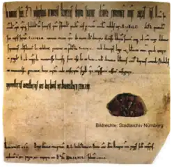 Se trata de un certificado expedido el 16 de julio del 1050 por el emperador Enrique III el Negro (1039 a 1056) durante su estadía en Núremberg, que sostuvo durante su viaje a Borgoña.
