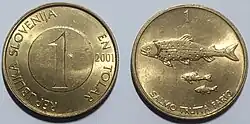 1 Tólar | Cu+Ni+Zn | 22,00 | 4,50 | Estriado | Truchas - SALMO TRUTTA FARIO - 1 | 1 - EN TOLAR - REPUBLIKA SLOVENIJA - año de acuñción |