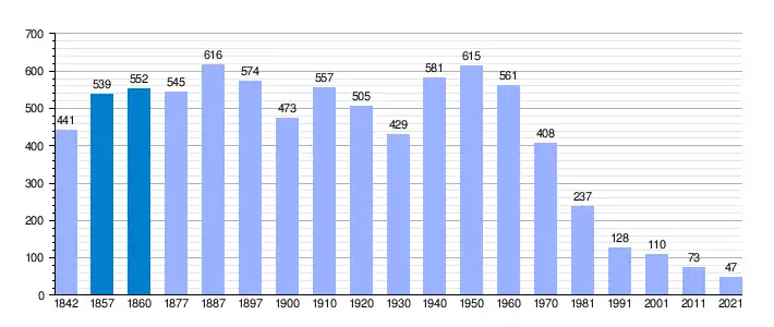 | Gráfica de evolución demográfica de Tórtoles[3] entre 1842 y 2021 |