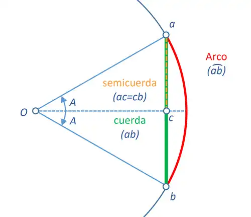 - "Cuando la segunda media [cuerda] particionada es menor que la primera media cuerda, que es [aproximadamente igual al] arco [correspondiente], en cierta cantidad, las [diferencias del seno] restantes son menores [que las anteriores] cada una por esa cantidad de esto dividido por la primera media cuerda".