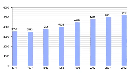 | Gráfica de evolución demográfica de Tahaa entre 1971 y 2012 |