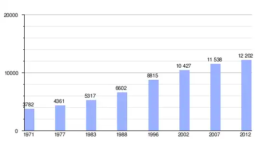 | Gráfica de evolución demográfica de Taiarapu-Este entre 1971 y 2012 |