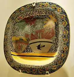 Platón de talavera de Marcela Lobo en exhibición en el Museo de Arte Popular, en la Ciudad de México | ||