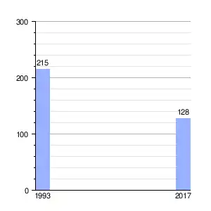 | Gráfica de evolución demográfica de Tasajeras entre 1993 y 2017 |