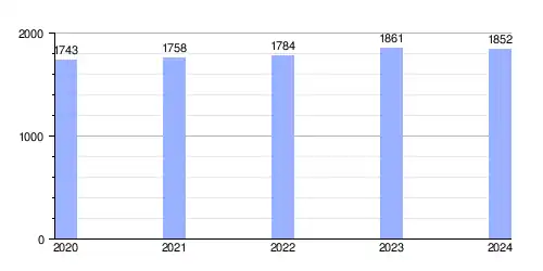 Hasta 2024 la población era de 1852 habitantes,[2] con una densidad de población de 33,63 hab/km².[2]