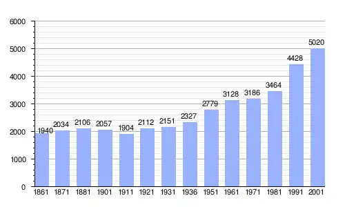 | Gráfica de evolución demográfica de Tavazzano con Villavesco entre 1861 y 2001 |