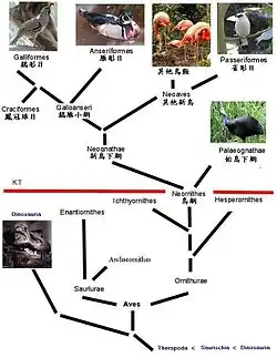 Las nuevas investigaciones sugieren que los patos y las gallináceas son entre sí parientes más cercanos y juntos forman el linaje más basal de las aves Neognathae (no-ratites), distintas de las otras que colectivamente son llamadas Neoaves. Las ratites y Tinamidae son seguidas por patos y relacionados y faisanes y relacionados. Los pingüinos, los colimbos y los somormujos son ubicados entre otros grupos que eran considerados tradicionalmente como más modernos.