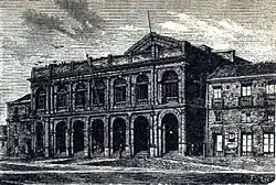 El 8 de diciembre de 1870 se originó un incendio. Una vez terminada la función de la cantante lírica Carlota Patti (hermana de la famosa Adelina Patti), mientras el público se retiraba, al caer el telón (más de 1,2 toneladas de terciopelo rojo), con sus extremos rompieron una cañería del alumbrado, por ese entonces de gas. El personal del teatro recorrió el escenario buscando la avería, pero la llama de un farol había encendido el gas acumulado. Así, los elementos inflamables del escenario ocasionaron que el incendio se propagara con mayor rapidez.